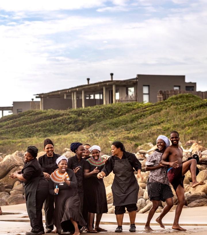 The architecture draws inspiration from the rich traditions of the Mpondo people, honouring local culture while offering guests luxurious accommodation and thoughtfully designed spaces that blend seamlessly into the natural landscape.