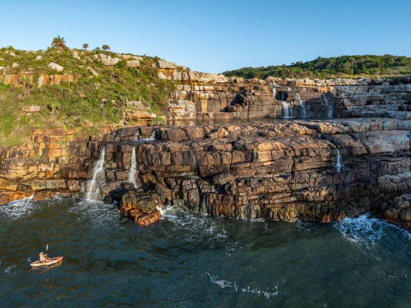 ‘Set within a private concession of a reserve on one of the wildest sections of the Wild Coast, you’ll feel miles from civilization yet have comforts such as wood-burning fires and South Africa’s top wines waiting after a day of epic adventures like paddleboarding to hidden waterfalls and rock scrambling through gorges.’